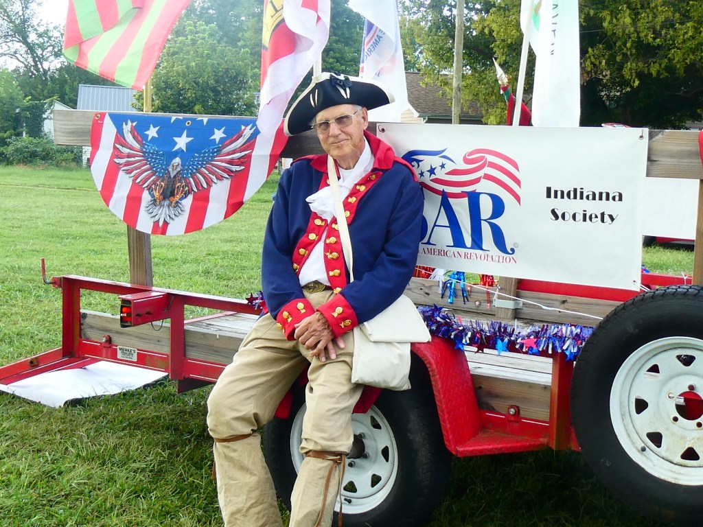 SAR Color Guard at Paragon, IN. 2024Luke JacksonState Secretary Schultz with his drum.Randy Helderman and Ed Hitchcock, AKA “The Cane Brothers”Jim Arnold, Ron Darrah, Alan Boyd and T Rex.