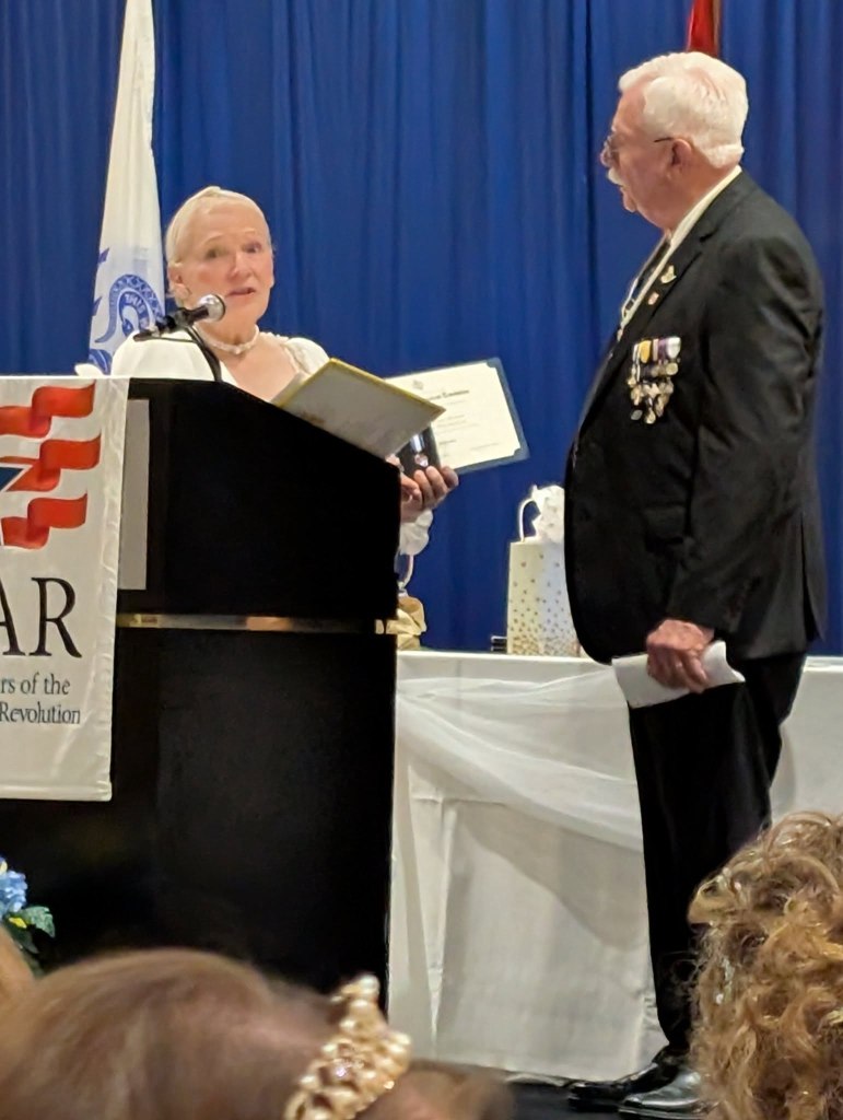- Society President Behnke gave greetings to the DAR and the SAR Color Guard presented a Sabre Arch.